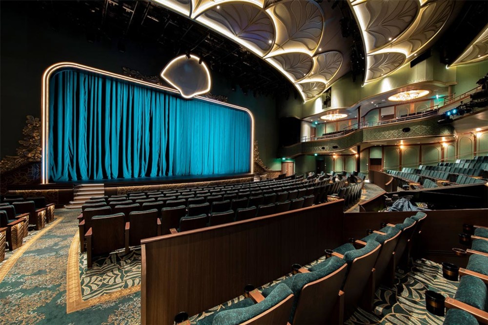 El Disney Treasure es un barco que celebra la aventura con la magia característica de Disney, comenzando por su impresionante Grand Hall, inspirado en cuentos de exploración y presidido por Jasmine y Aladdín sobre su alfombra mágica.